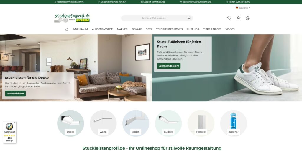 Ewering Raumdesign, unser Fachmarkt auf über 1000 m² mit integrierter Raumausstattung sorgt bei unseren Kunden für ein anspruchsvolles Raumambiente. Im Bereich unserer Onlineshops beraten wir unsere Kunden, die mittlerweile aus ganz Europa unsere Dienstleistung nutzen.