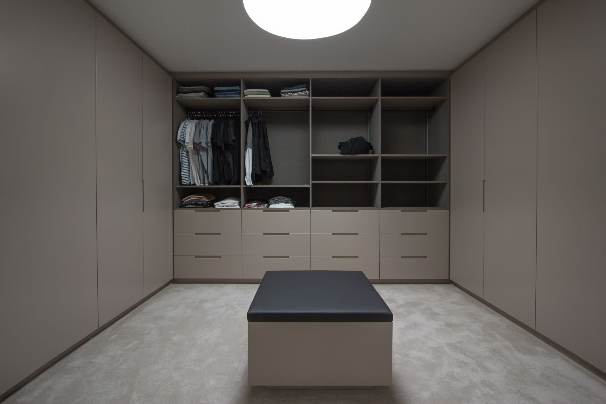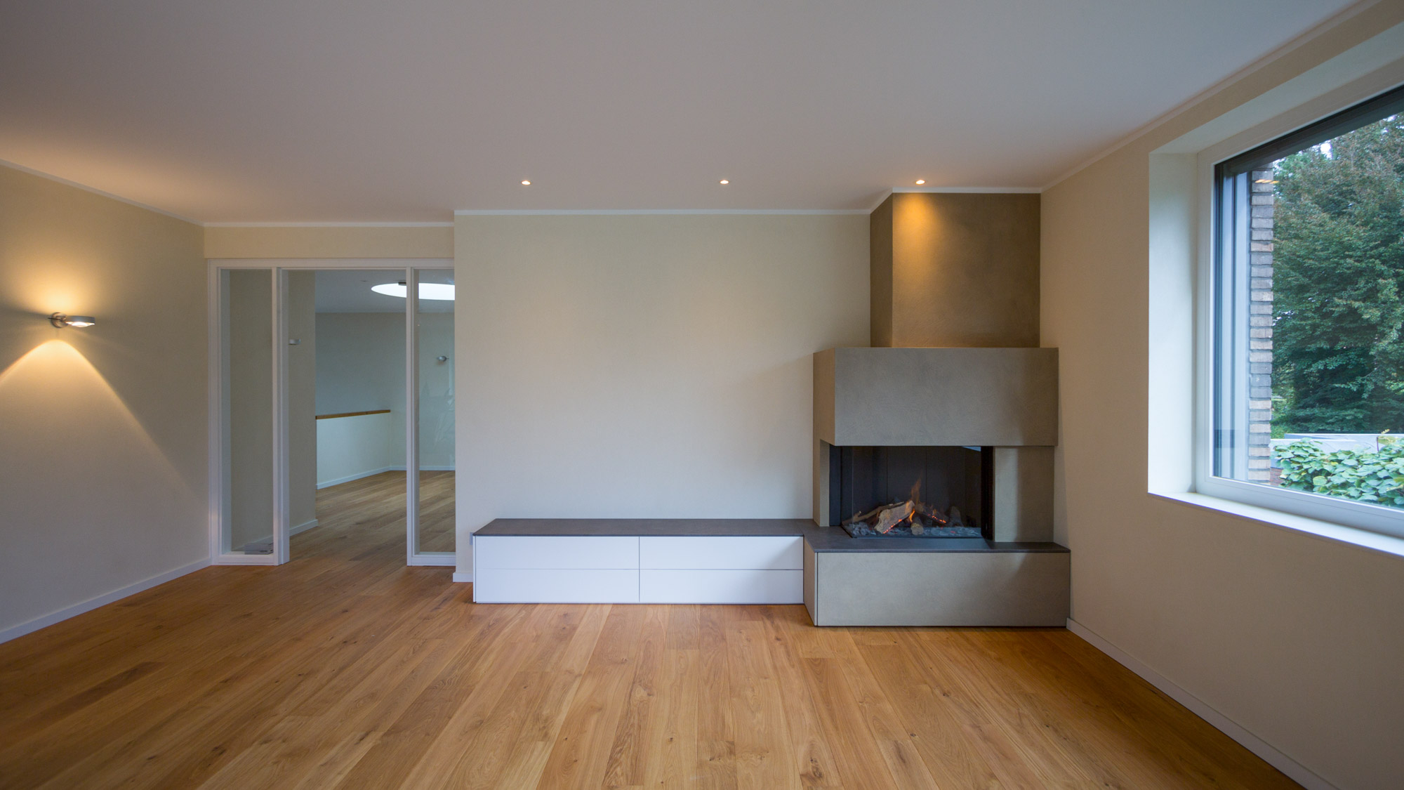 Der Schwerpunkt lag auf exklusiven Wandoberflächen mit Frescolori, die dem Wohnhaus im Münsterland eine hochwertige und zugleich ruhige Ausstrahlung geben. Caramor, Concrete und Rolamor setzen jeweils andere Akzente, bleiben im Gesamtbild aber sauber aufeinander abgestimmt.