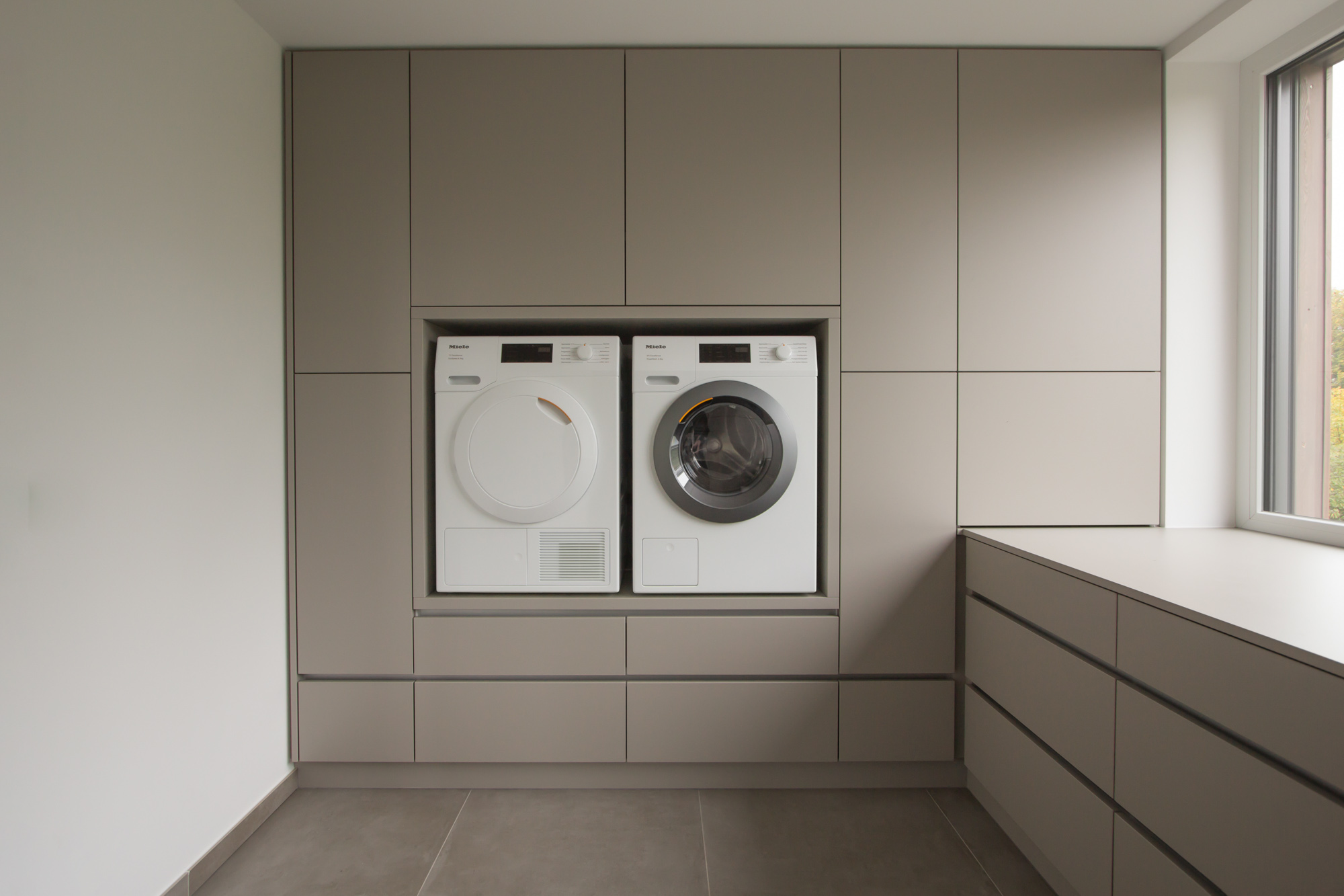 Mit Caramor, Concrete und Rolamor wurden verschiedene Materialcharaktere eingesetzt. Dadurch entsteht keine monotone Wirkung, sondern ein ausgewogenes Spiel aus Struktur, Feinheit und Oberfläche. Das macht die Wandgestaltung abwechslungsreich, ohne dass sie unruhig wird.