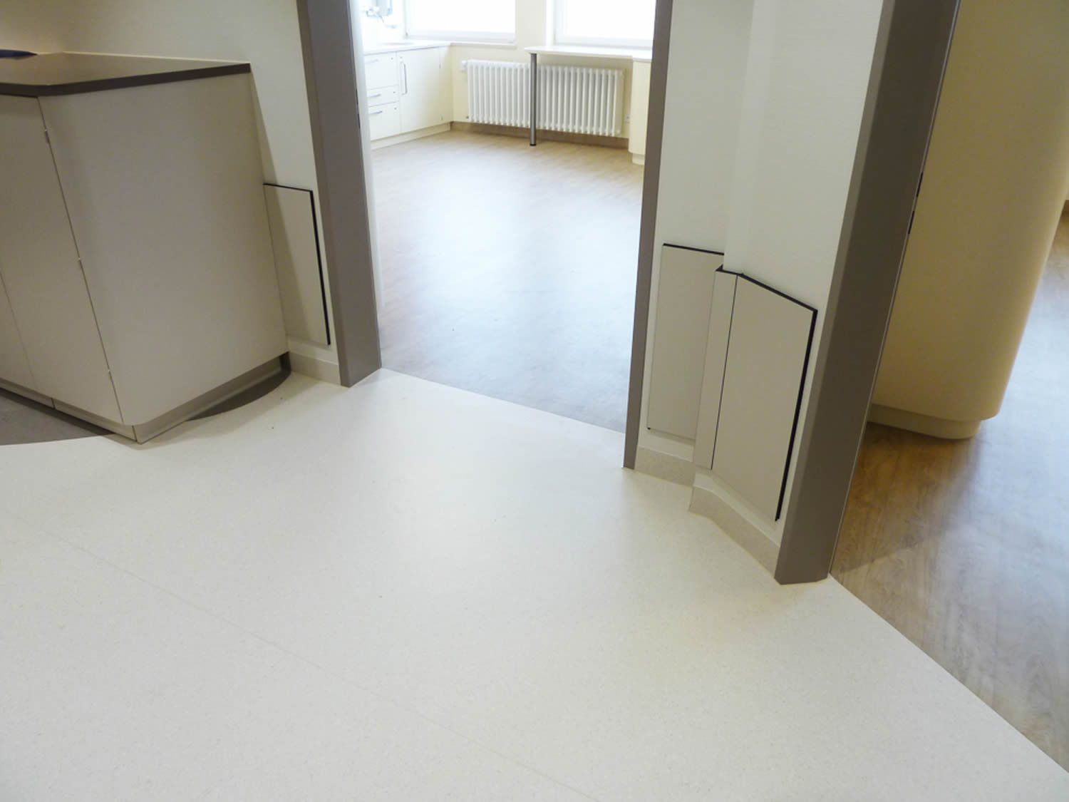 Stimmig wird das Gesamtbild, weil Material, Farbwahl und Raumgefühl sauber ineinandergreifen. So entsteht eine Entbindungsstation, die modern gestaltet ist und gleichzeitig genau die freundliche Wirkung mitbringt, die in diesem Umfeld besonders wichtig ist.
