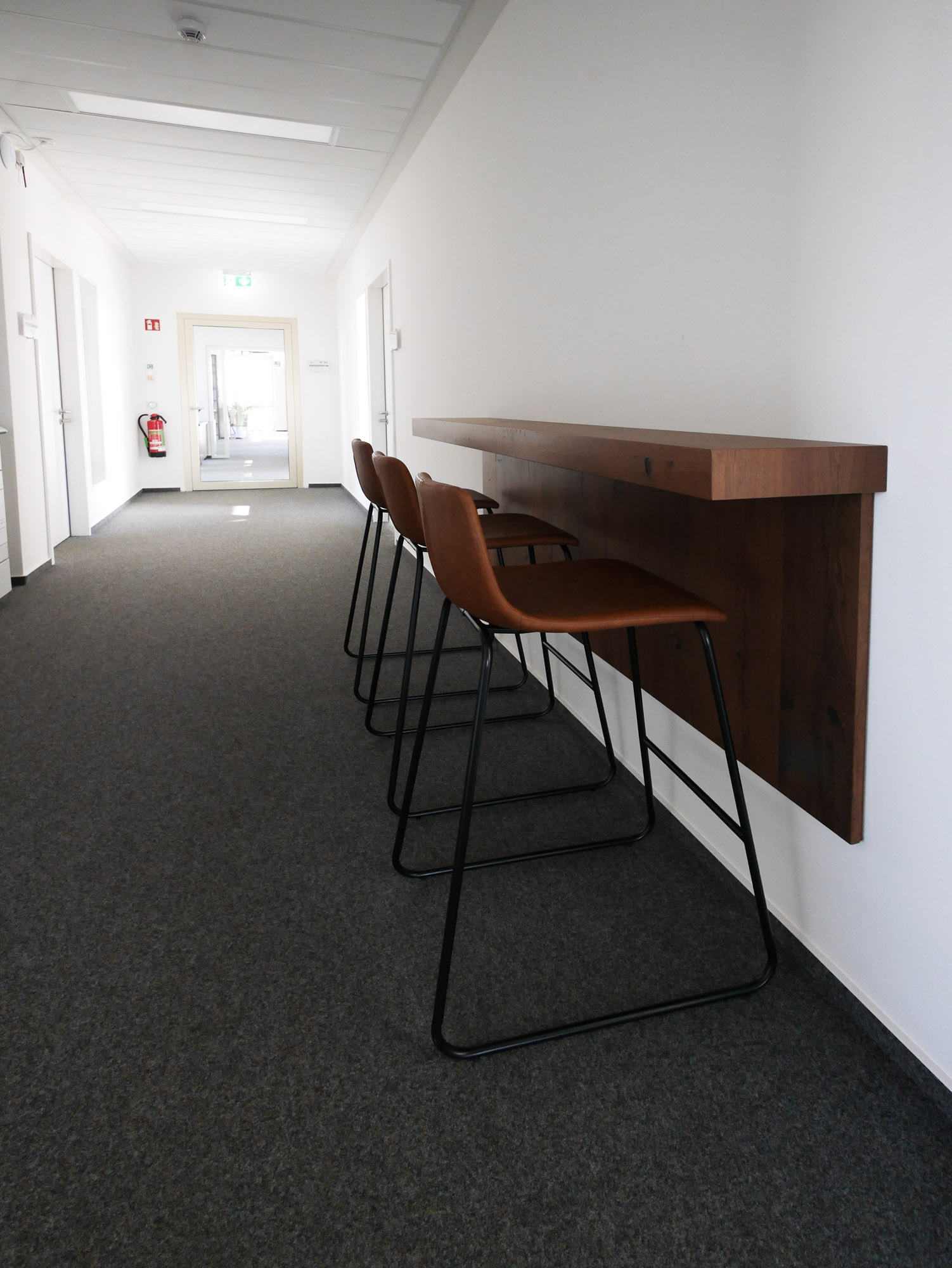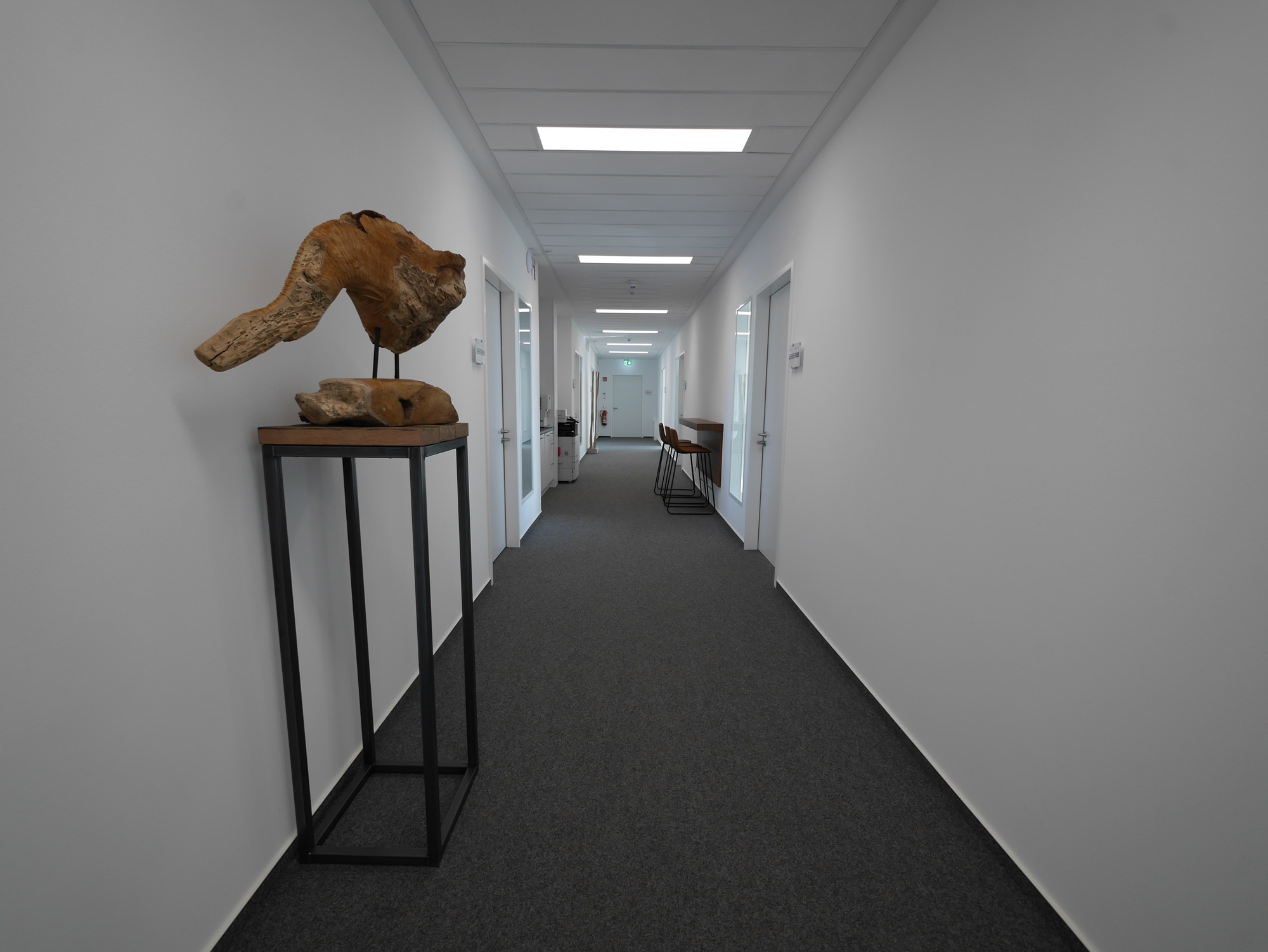 Besonders stimmig wird das Projekt durch die konzeptionierte Dekoration in den Bürofluren. Sie verbindet die Bereiche miteinander, bringt Orientierung ins Gebäude und sorgt dafür, dass die Arbeitswelt nicht beliebig, sondern bewusst gestaltet wirkt.