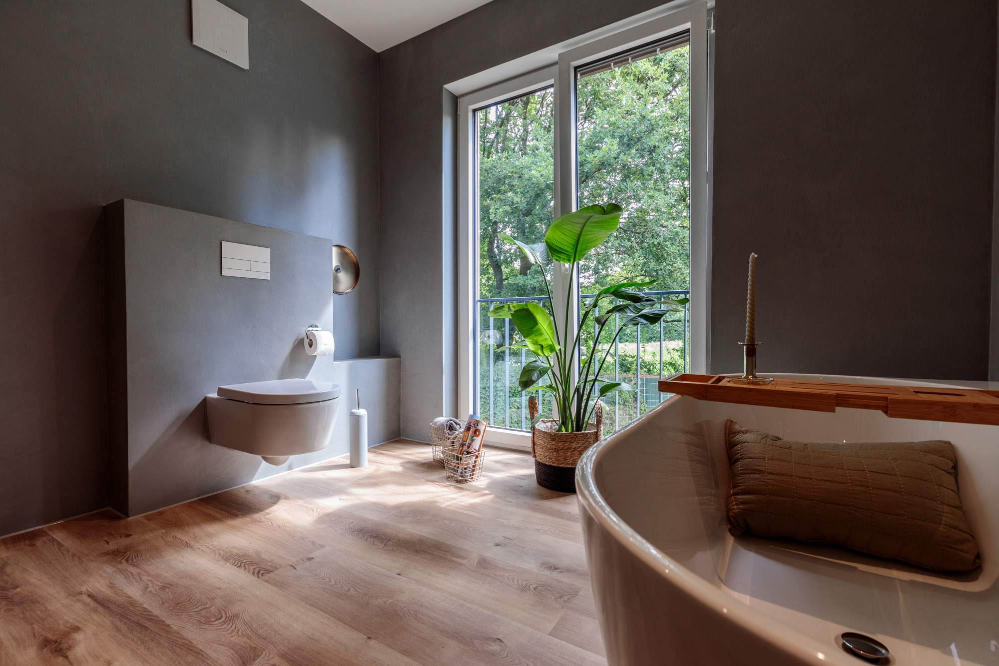 Stimmig wird das Ergebnis vor allem durch die konsequente Abstimmung aller Flächen. Der graue Farbton bleibt präsent, ohne dominant zu werden, und lässt den Räumen genug Ruhe, damit Einrichtung, Licht und Architektur ihre volle Wirkung entfalten können.