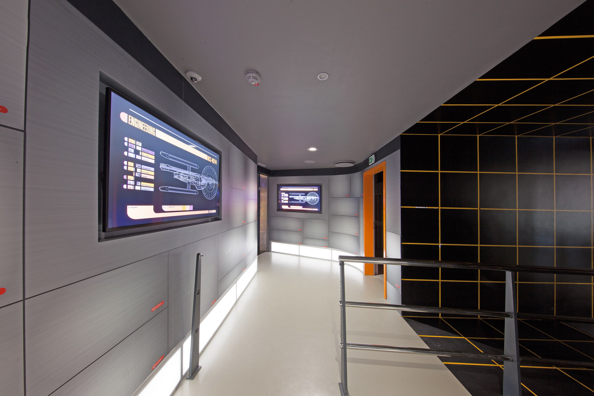 Gestaltungselement, das die Atmosphäre der Star Trek Bahn sichtbar verstärkt und den Raum deutlich eigenständiger wirken lässt.