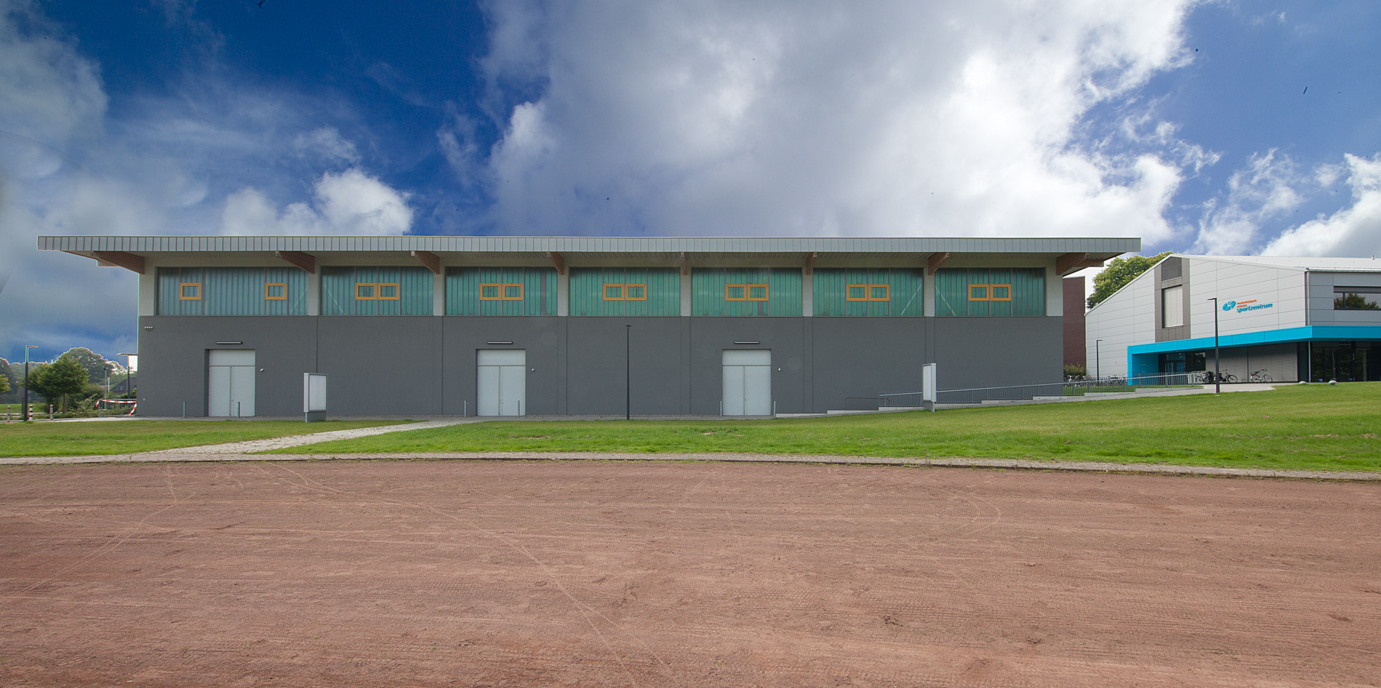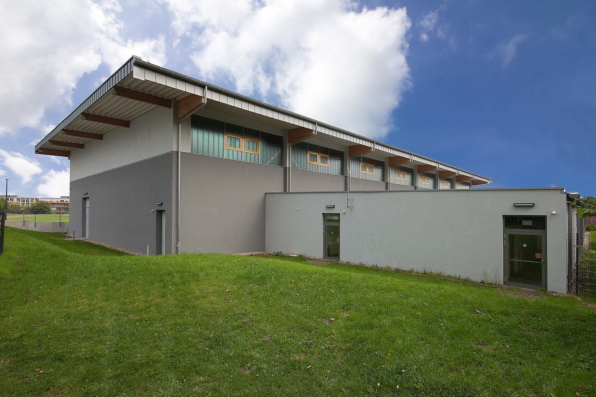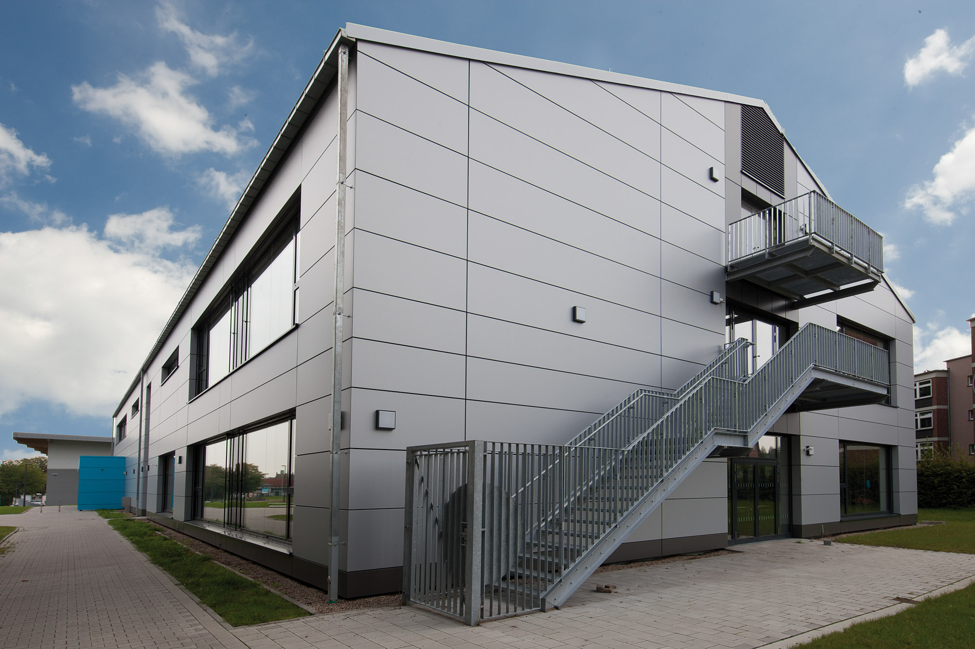 Klare Oberflächen für ein Gebäude, das Bewegung, Gesundheit und Funktion zusammenbringt.