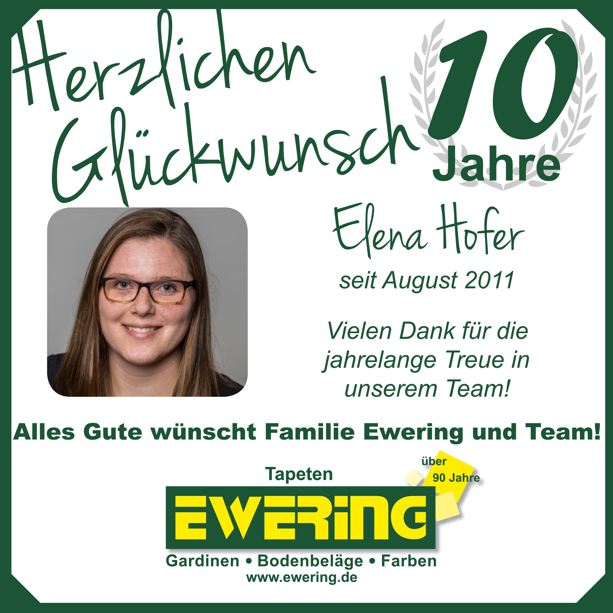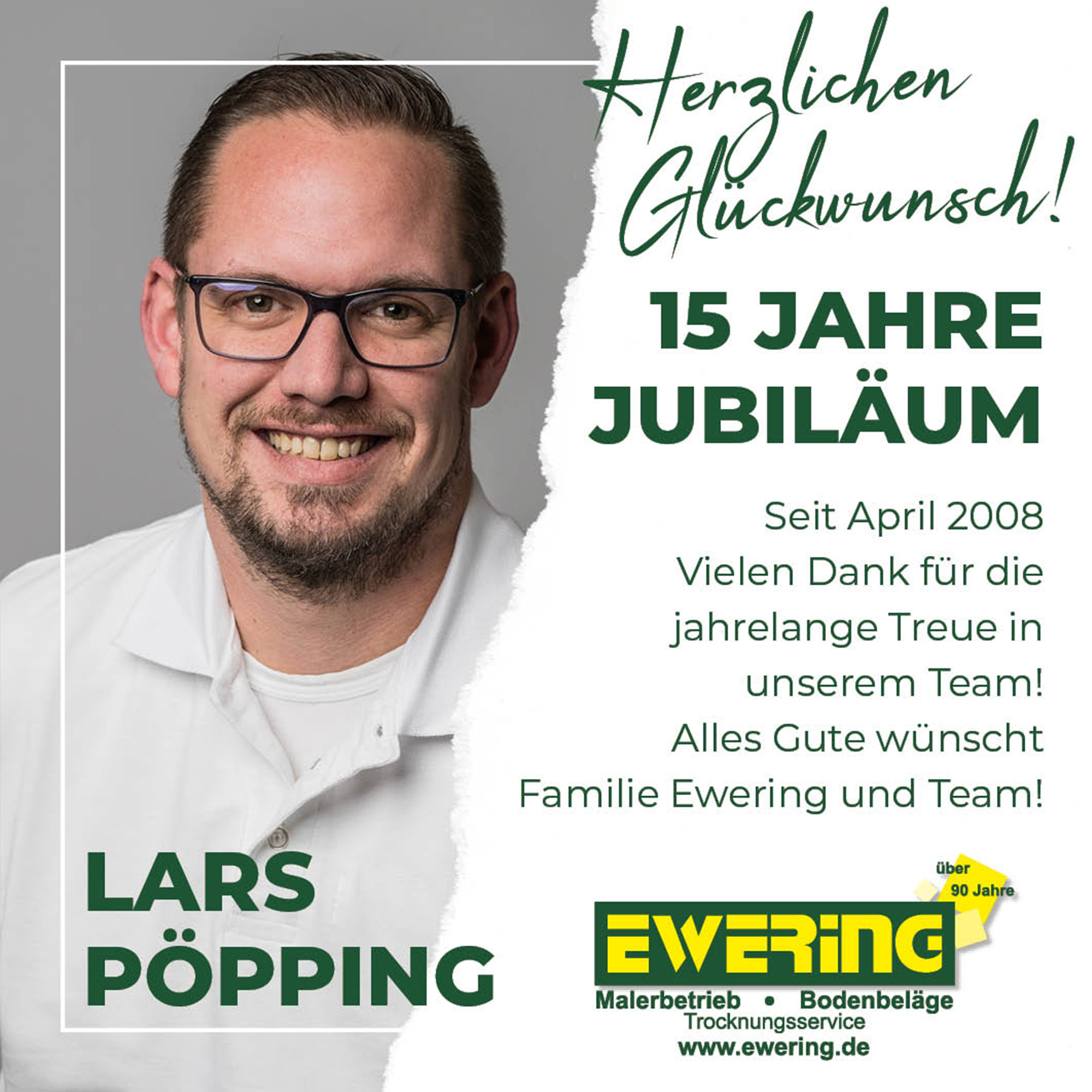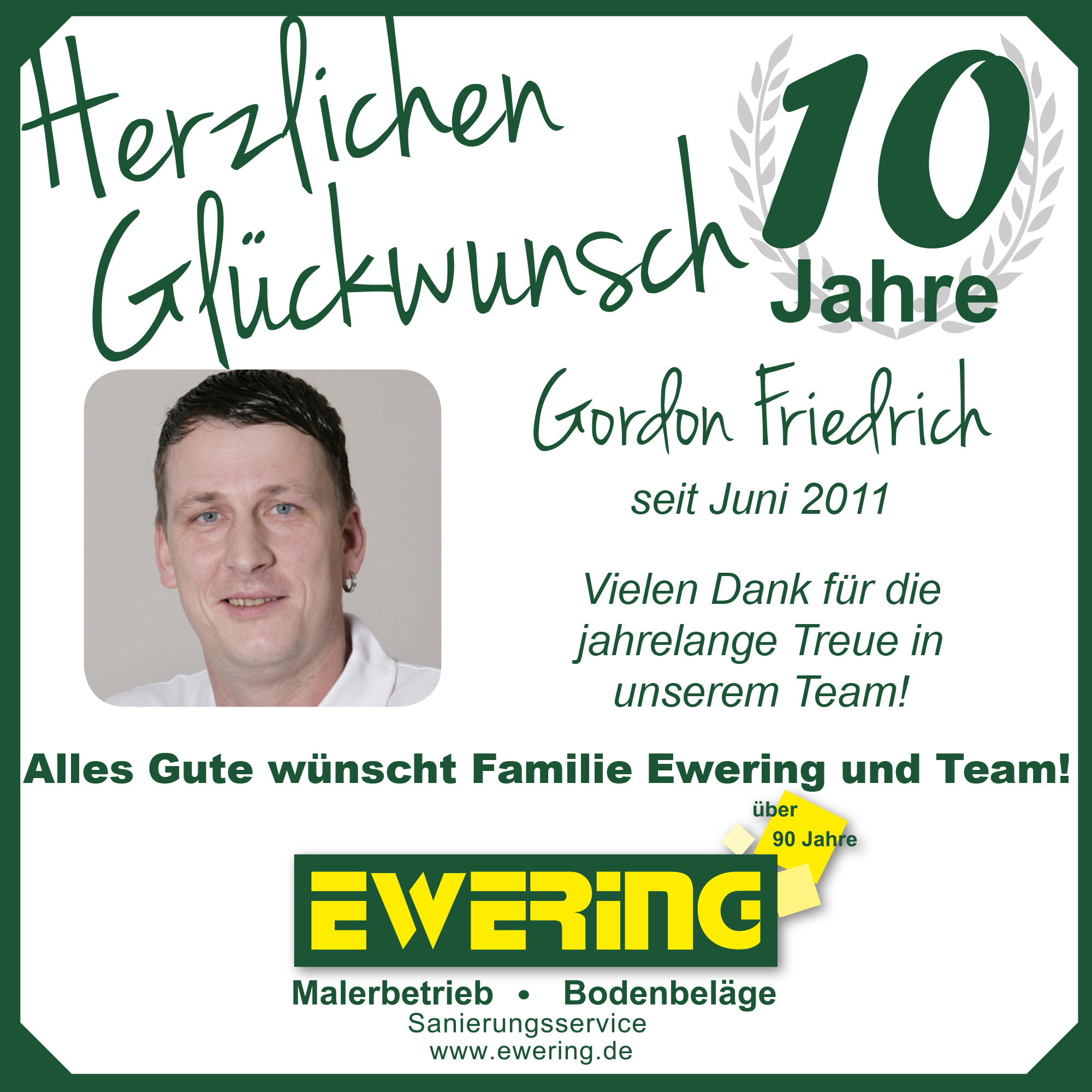 Kaum zu glauben, wie schnell die Zeit vergeht – umso mehr schätzen wir die gemeinsame Entwicklung und die vielen Erfolge, die wir in diesen Jahren miteinander erreichen konnten. Wir hoffen und freuen uns auf viele weitere Jahre, in denen ihr ein fester Bestandteil der Ewering GmbH in Reken bleibt.