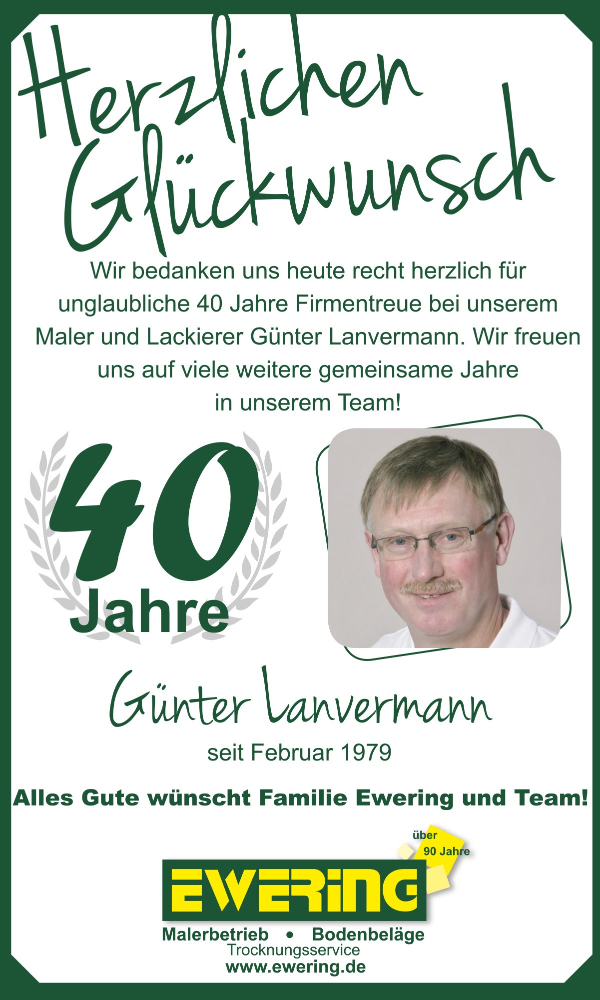Ein Mitarbeiterjubiläum ist für uns weit mehr als nur ein Anlass zum Gratulieren. Es ist ein besonderer Moment, in dem wir auf viele gemeinsame Jahre, auf Vertrauen, Einsatz und echte Verbundenheit zurückblicken. Denn hinter jedem Jubiläum stehen Menschen, die Ewering über viele Jahre mitgetragen, mitgeprägt und mit aufgebaut haben. Ob 10 Jahre, 20 Jahre oder sogar 40 Jahre Betriebszugehörigkeit – diese Treue ist alles andere als selbstverständlich und macht uns als Unternehmen stolz. Mit dieser Seite möchten wir Danke sagen. Danke an all unsere langjährigen Kolleginnen und Kollegen, die mit ihrer Erfahrung, ihrer Verlässlichkeit und ihrem täglichen Einsatz ein wichtiger Teil unseres Teams sind. Wir schätzen die gemeinsame Zeit, blicken mit Freude auf viele erfolgreiche Jahre zurück und freuen uns auf noch viele weitere Jahre im Team Ewering.