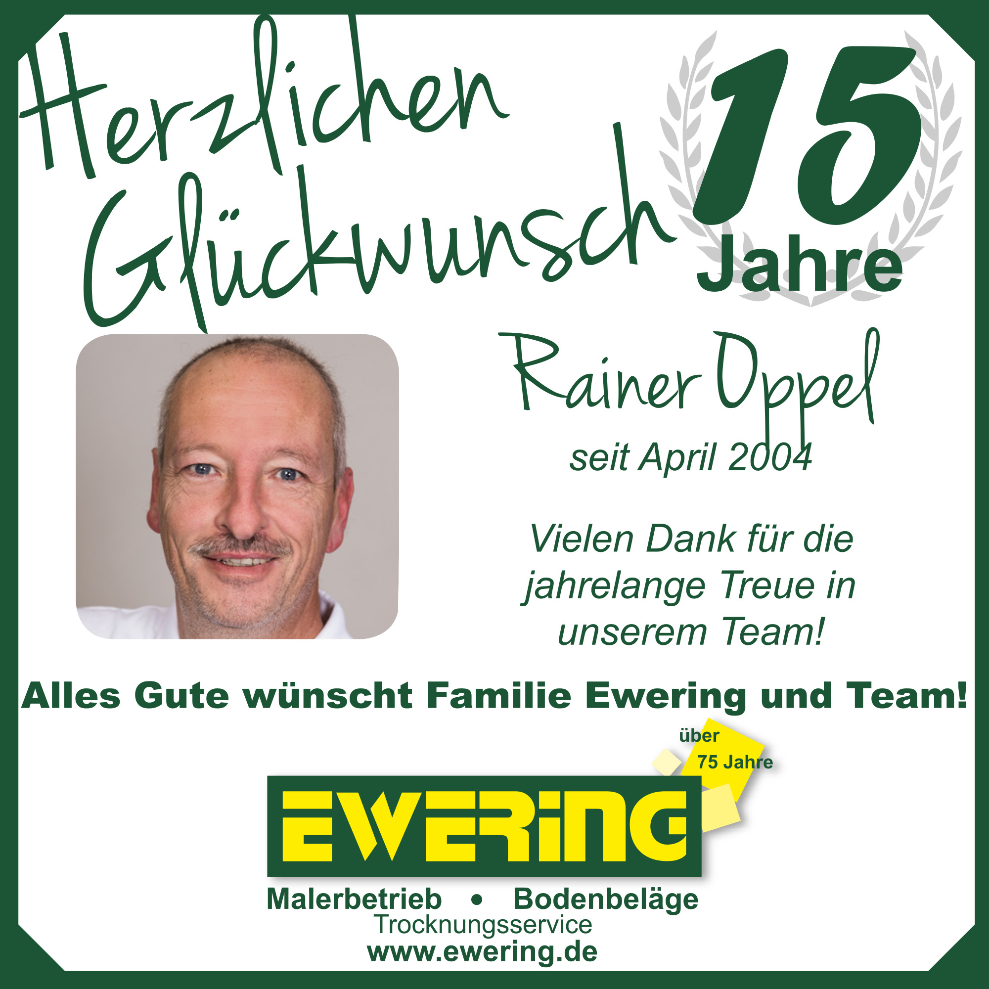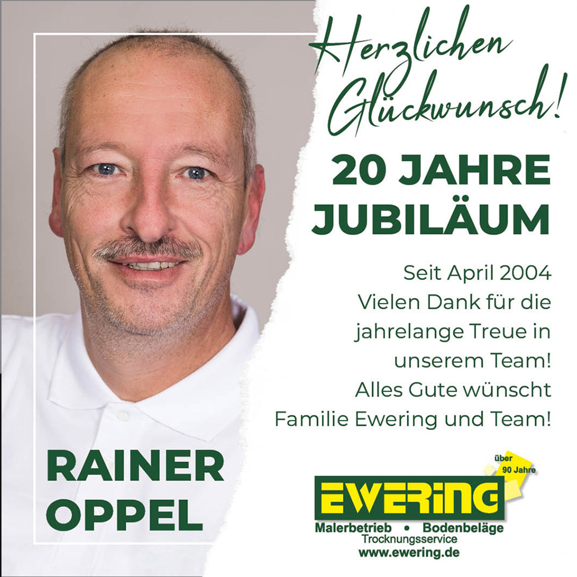 Auch Rainer Oppel dürfen wir zu einem besonderen Meilenstein gratulieren: Seit nunmehr 20 Jahren ist er ein verlässlicher und geschätzter Teil unseres Teams. Seine Treue, sein Einsatz und seine Beständigkeit sind für uns von großem Wert.
