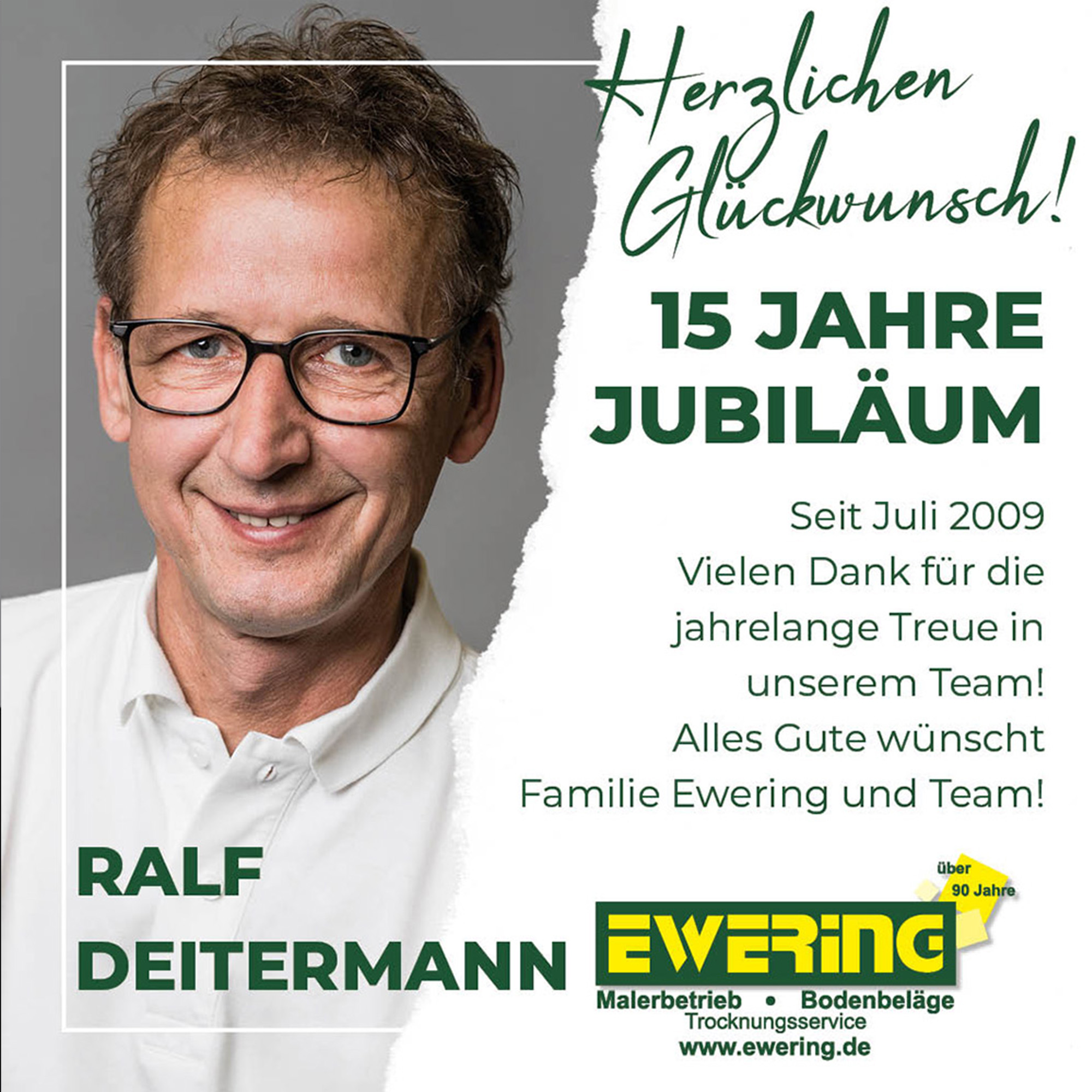 Ebenso feiern in diesem Jahr Iris Ewering und Ralf Deitermann ihr 15-jähriges Jubiläum. Wir blicken mit Stolz auf die gemeinsame Zeit zurück und bedanken uns für die stets vertrauensvolle und erfolgreiche Zusammenarbeit.