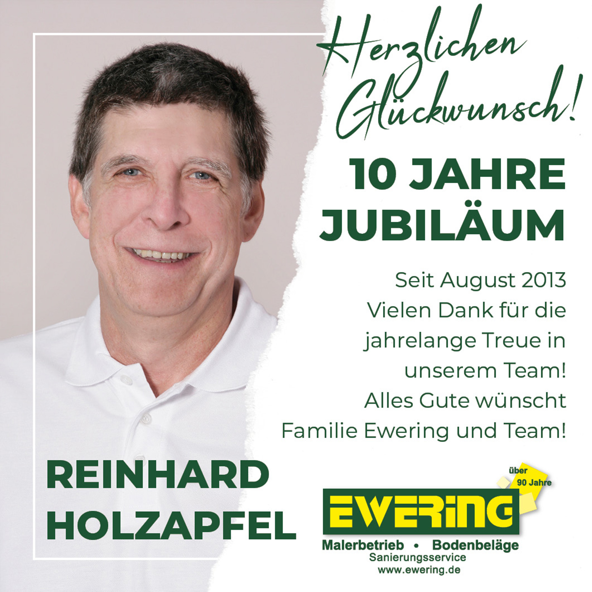 Ebenso dürfen wir in Berlin Reinhard Holzapfel zu seinem 10-jährigen Jubiläum gratulieren. Auch er ist seit einem Jahrzehnt ein geschätztes Mitglied unseres Teams und steht für Kontinuität und Einsatzbereitschaft.